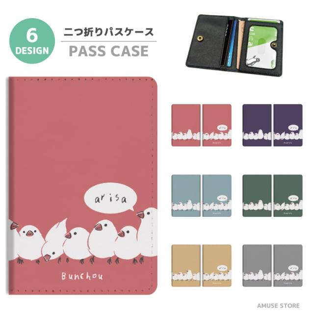 名入れ プレゼント 2つ折り パスケース 定期入れ 学生 カード 紛失防止 ストラップホール付 カバー 高級感 軽量 かわいい 革 ギフト おしゃれ インコ 文鳥 ブンチョウ 小鳥 鳥 韓国