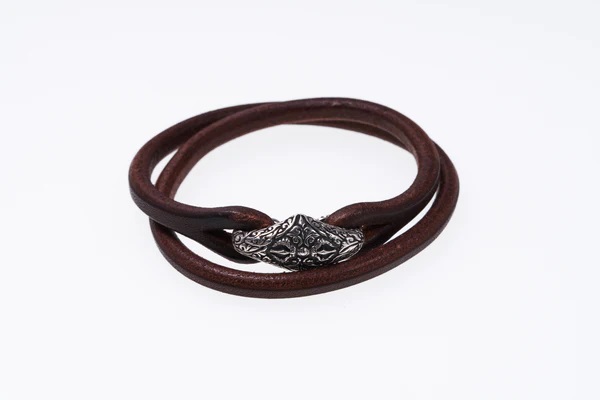 ブラウン・レザーの二重巻きタイプブレスレット。