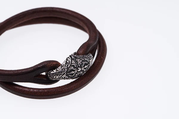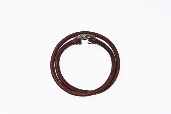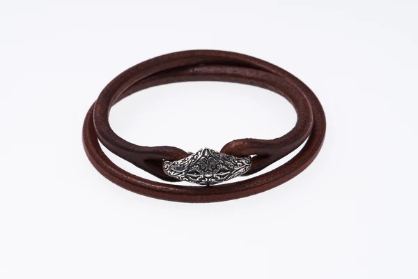 ブラウン・レザーの二重巻きタイプブレスレット。
