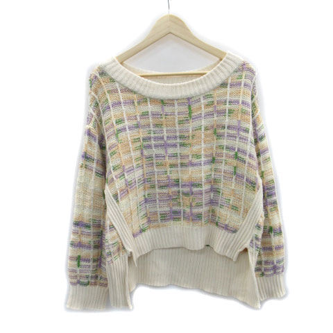 【中古】ピーチジョン ニット セーター 長袖 ラウンドネック 総柄 スリット M/L マルチカラー ベージュ レディース