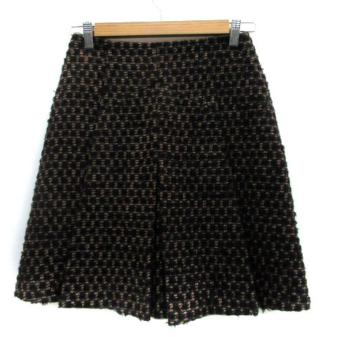 【中古】ビアッジョブルー ボックスプリーツスカート フレアスカート ひざ丈 ウール混 1 黒 ブラウン レディース