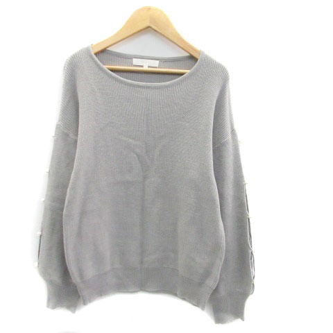 【中古】グローブ grove ニット セーター ラウンドネック 長袖 切替 フェイクパール L グレー /HO10 レディース