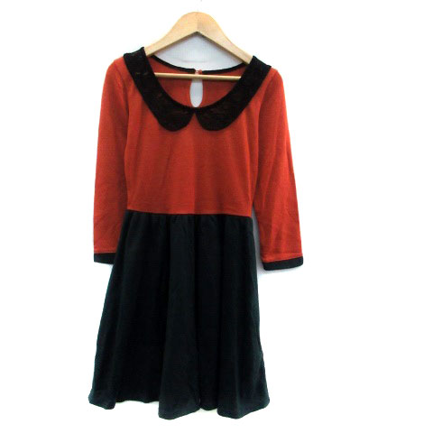 【中古】未使用品 ロイヤルパーティー ニットワンピース 七分袖 ミニ丈 レース M オレンジ モスグリーン レディース