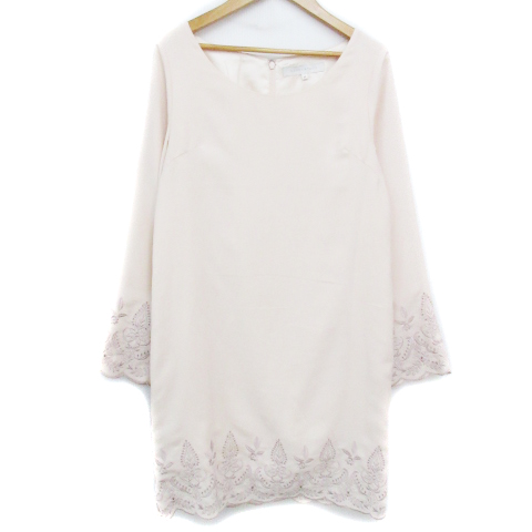 【中古】マーキュリーデュオ フレアワンピース ひざ丈 長袖 ラウンドネック 刺繍 F ベージュ ピンク /FF16 レディース
