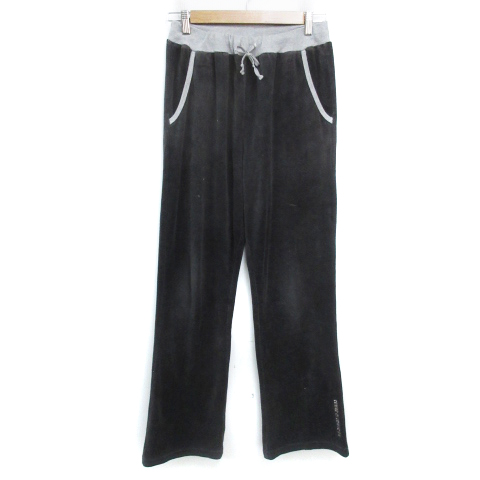 【中古】コムシコムサ フレアパンツ イージーパンツ ロング丈 ロゴ刺? L 黒 グレー ブラック /FF7 レディース