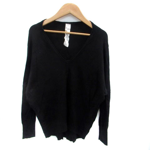 【中古】ムルーア MURUA ニット カットソー Vネック 長袖 ドルマンスリーブ 無地 F 黒 ブラック /HO3 レディース
