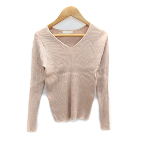 【中古】エージーバイアクアガール リブニット カットソー 長袖 Vネック ラメ S ピンクベージュ ■MO レディース