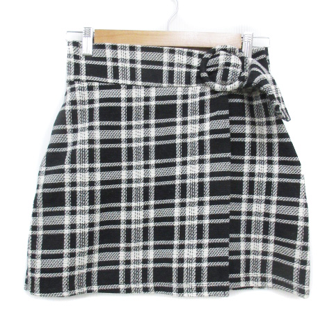 【中古】ザラ トラファルック 台形スカート ミニ丈 リングベルト チェック柄 S 白 黒 ホワイト ブラック レディース