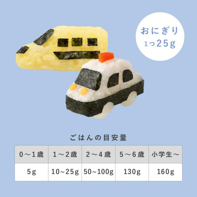 「車」と「電車」の2種類のひとくちおにぎりが作れる専用型付き。