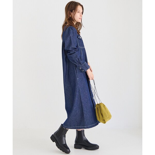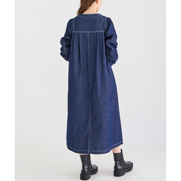 後ろ姿も抜かり無いバックタックデザインもポイント。1枚でワンピースとしてはもちろん、前を開けてライトコートとしても着用可能なので、季節の変わり目にも活躍します。