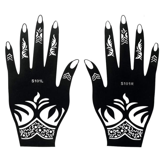 右手と左手の手の甲にフェイクタトゥーを簡単に描けるヘナタトゥー用のステンシルシートステッカーです。