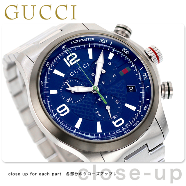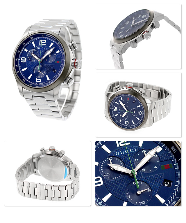 7年保証キャンペーン グッチ Gタイムレス クロノグラフ スイス製 メンズ 腕時計 YA126288 GUCCI G-TIMELESS アナログ ネイビー ◆1921年、グッチオ・グッチは革製品の会社を起業し、フィレンツェに小さな鞄店を開業。ブランドに対する彼のビジョンは、ロンドンと、彼がサボイ・ホテルで働いていた時に見た英国貴族の洗練された審美眼から培われたものです。財布や革製品以外にもアクセサリーや腕時計も品質の高さや、洗練されたデザインが人気で一気に高級ブランドの地位を確立しました。今では名を知らない人はいないぐらい世界的に有名なブランドです。 ビッグケースが特徴のクロノグラフ搭載モデル。シンプルなデザインはシーンを問わずお使いいただけ、誕生日や記念日などのプレゼントにもおすすめです。