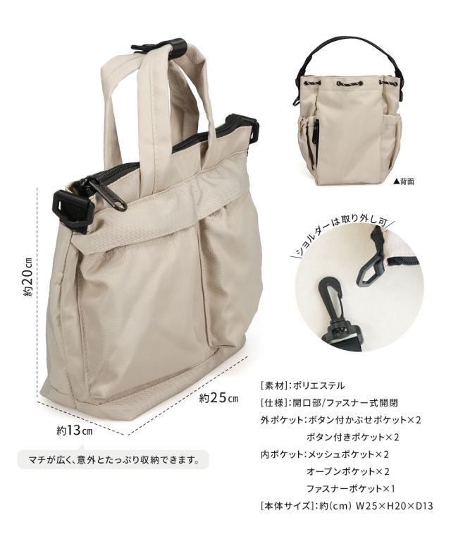 肩紐が簡単に取り外せるので、コーデによって使い分けできます。