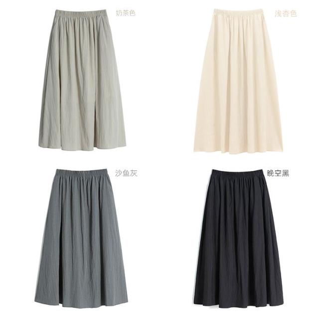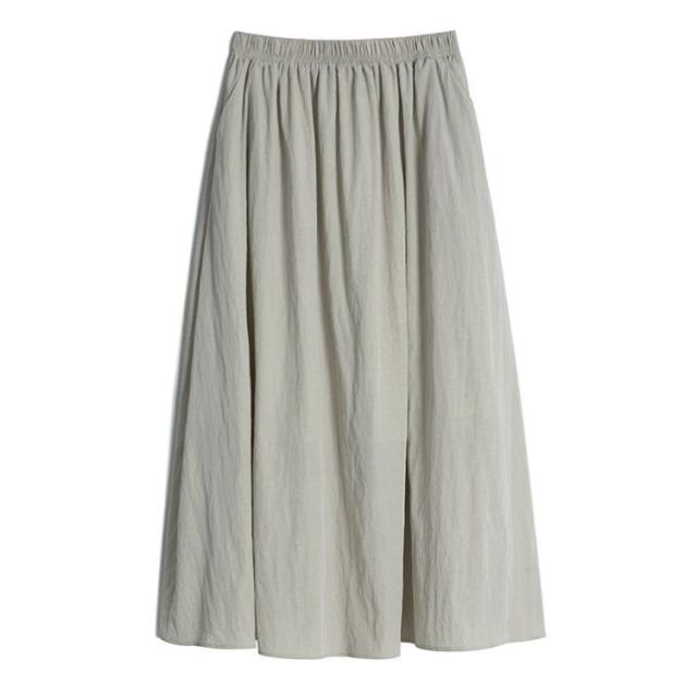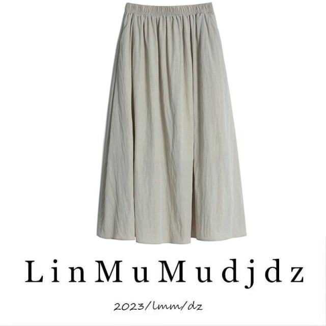 フレアスカート レディース 夏 ロング丈 マキシ丈 プリーツスカート ハイウエスト リネン風 薄手 体型カバー 着やせ