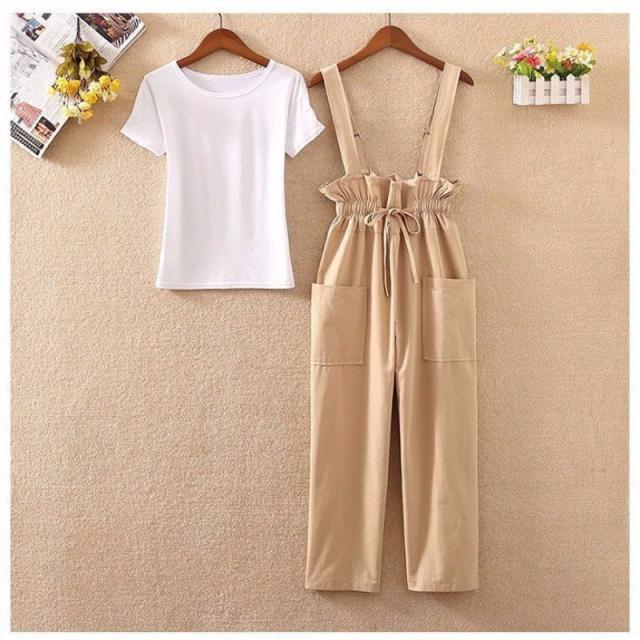 女の子 女児 中学生 高校生 ガールズ 9分丈 かわいい おしゃれ 春 夏 夏服 ボトムス パンツ ズボン サロペット 無地 お出かけ 服 サマー