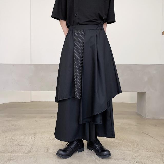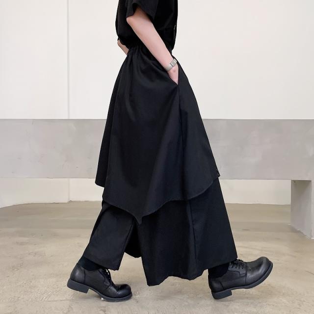 袴パンツ 韓国 黒 体系カバー モード系 メンズ ワイドパンツ 個性的 レディース 高級感 スカンツ 無地 ビッグシルエット ドレープ ストリート系