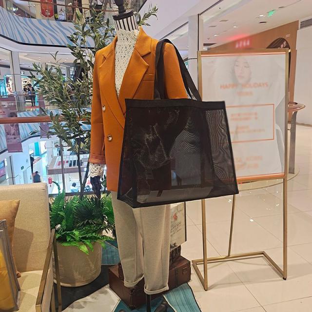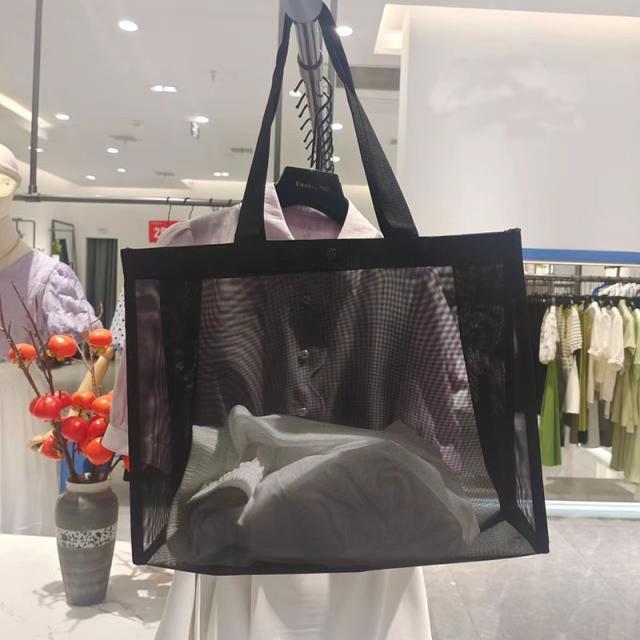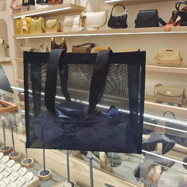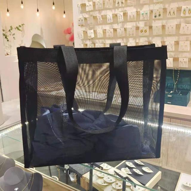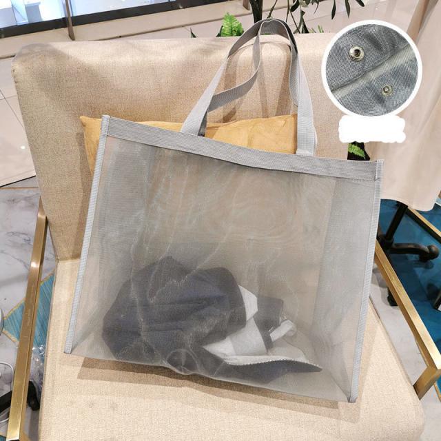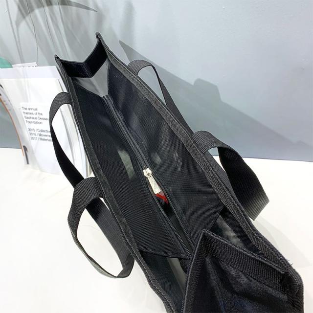 メッシュ トートバッグ レディース クリア トートバッグ ファスナー付き ポケット付き 肩掛け エコバッグ ビーチバッグ 軽量 おしゃれ