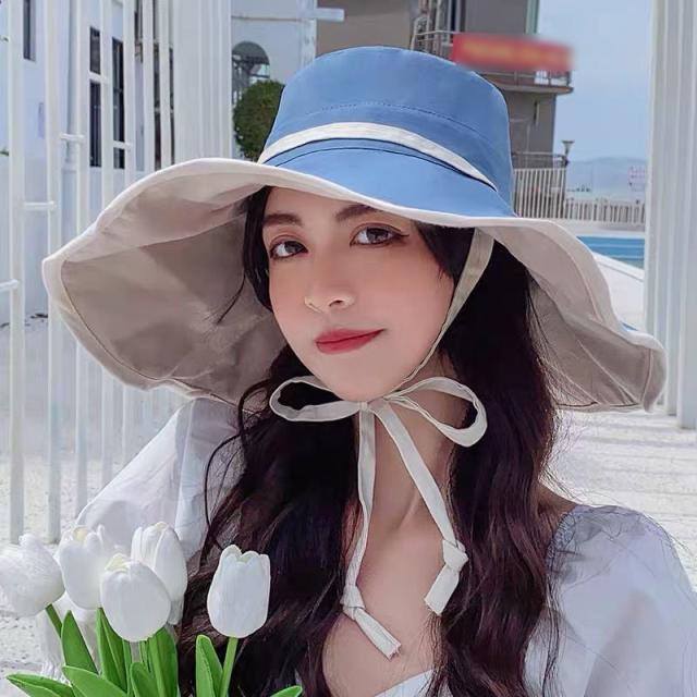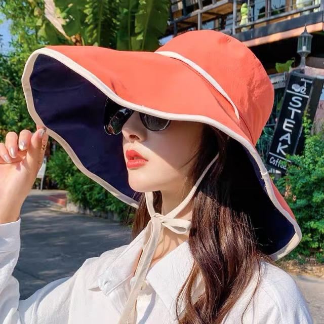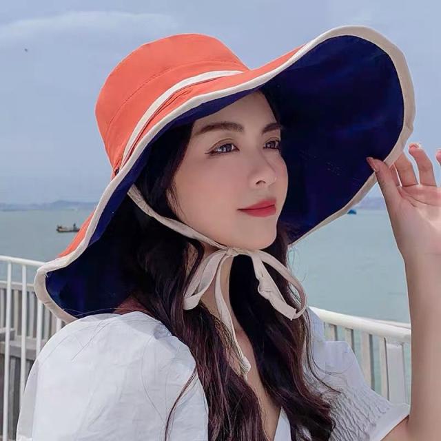 レディース 帽子 折りたたみ リバーシブル ワイヤー入り つば広 自転車 UVカット 小顔効果 大きいサイズ 遮光 あごひも ボタンで留めれる コンパクト 完全遮光 日焼け止め 旅行 通勤 春 夏 57.5cmサイズ