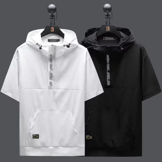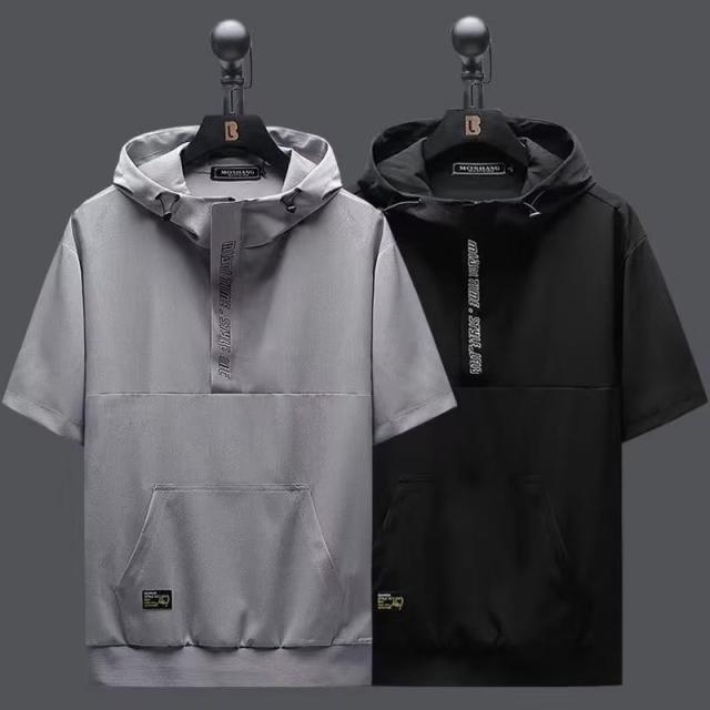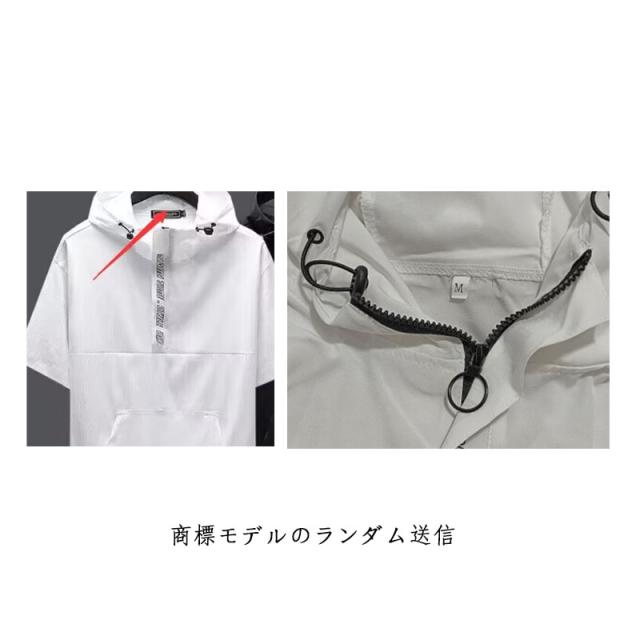 半袖 メンズ パーカー トップス 夏物 フード付き ハーフジップ 薄手 お洒落 カジュアル 夏服 大きいサイズ シンプル ゆったり プルオーバー