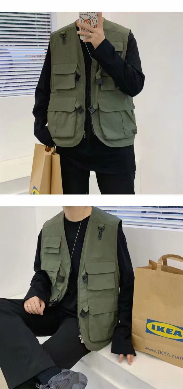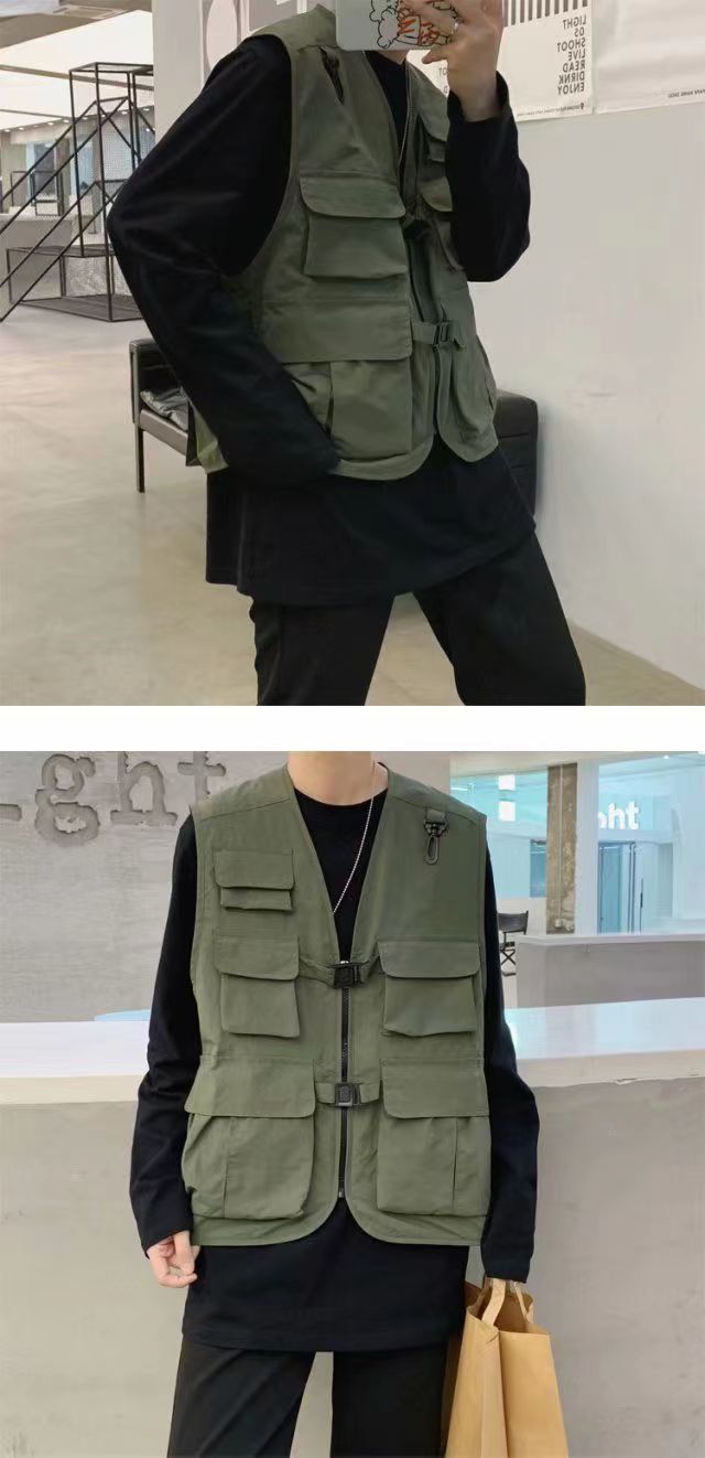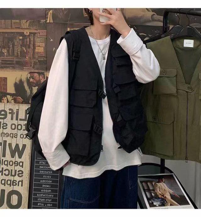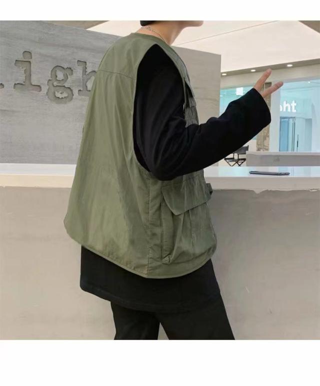 ベスト メンズ チョッキ ジレ マルチポケット 羽織り 前開き サマーベスト カジュアル ベスト 重ね着 韓国ファッション 春服 秋服