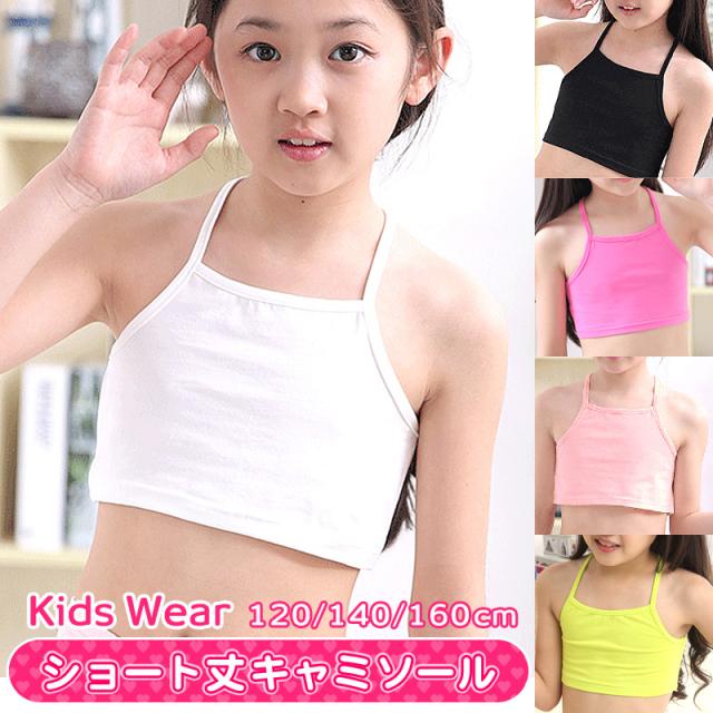 子供用タンクトップ ダンス衣装 タンクトップ キッズ ショート丈 へそ出し短い ヒップホップ キャミトップ インナー スポーツ バスケ おしゃれジュニアガールズ子ども女の子シンプル無地ブラック黒ホワイト白ライトピンク濃いピンク イエローグリーン黄色緑 120cm140cm160cm