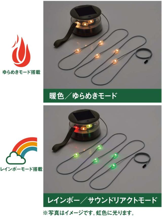 | ・総重量:(約)360g ・本体サイズ:(約)直径13*高さ7cm ・ケーブル長:(約)540cm ・発光部の数:10個 ・点灯モード:暖色/ゆらめき/レインボー/サウンドリアクト ・常用点灯時間:(約)8時間 ・蓄電方式:USB(TypeC)蓄電 ・入力電圧/電流:5V/1A ・蓄電時間:(約)3時間 ・ソーラー出力:(約)0.6W ・ソーラー蓄電能力:(約)3時間→30分間点灯 ・構成:本体、蓄電用ケーブル ・主素材:ABS、PC、ナイロン |
