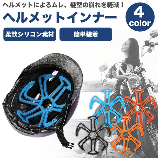 ヘルメットインナー 汗 ムレ 髪型崩れ 軽減 通気性 シリコン 突起 清潔 水洗い バイク 自転車 ヘルメット 汎用 インナー パッド 簡単装着 PR-HELIN【メール便 送料無料】