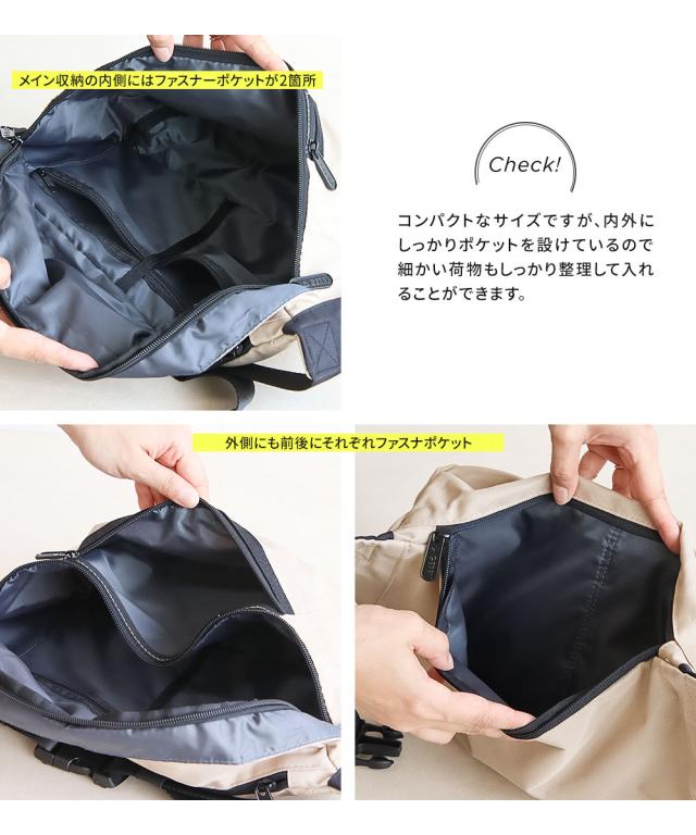 コンパクトなサイズですが、内外にしっかりポケットを設けているので細かい荷物もしっかり整理して入れることができます。