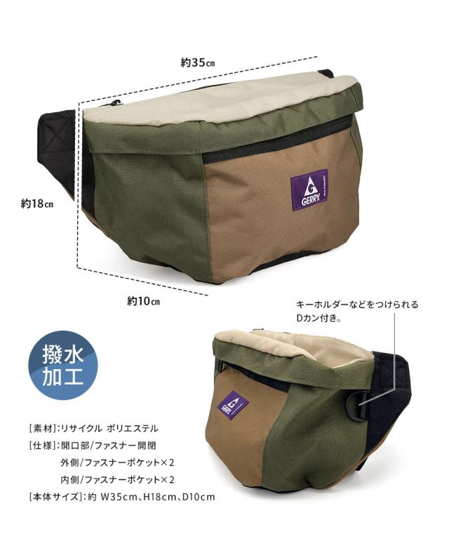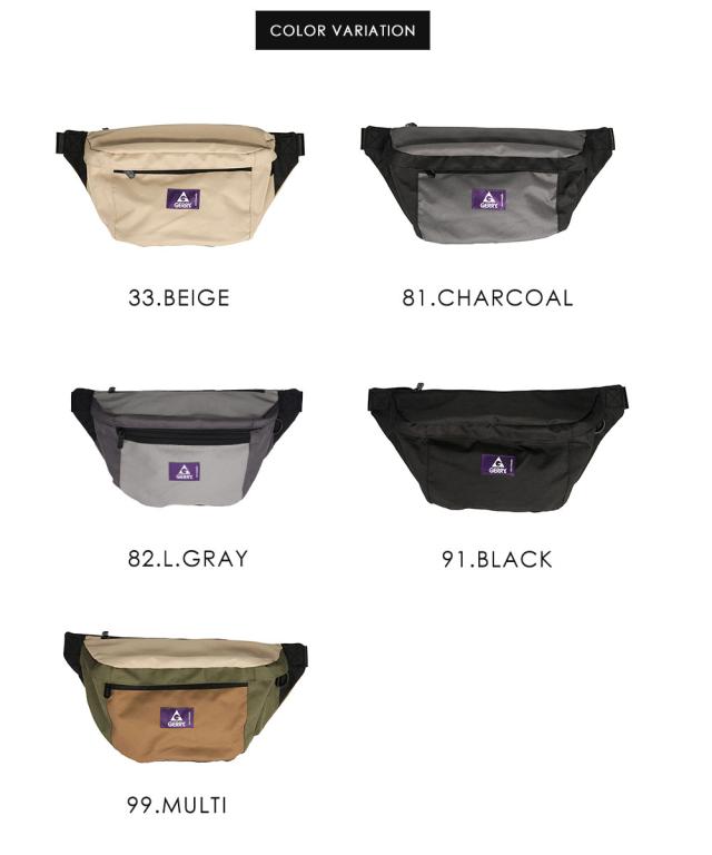 gerry ボディバッグ メンズ レディース ウエストポーチ ウエストバッグ ショルダー 軽量 スポーティー バッグ アウトドア 撥水 おしゃれ ブランド カジュアル 普段使い レジャー キャンプ ジェリー 黒 ブラック ブラウン カーキ グレー ベージュ チャコール r1711