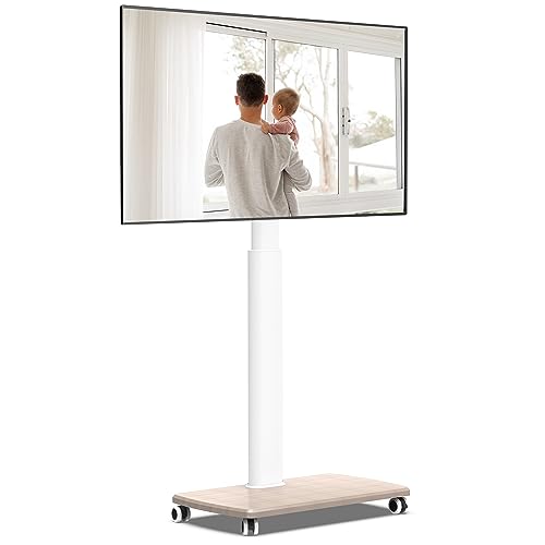 FITUEYES テレビスタンド 32-65インチテレビに対応 キャスター付き 高さ調節可能 首振り可能 移動式 木目調 ホワイト 耐震 FT-E1653WW