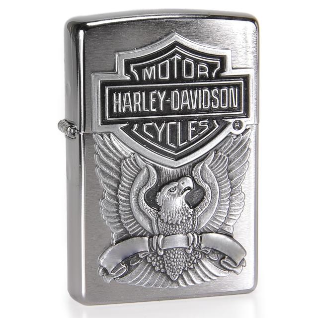 ブラッシュクロム加工のジッポーをベースにハーレーとイーグルのエンブレムをあしらったZIPPO。
