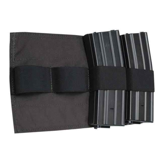 複数のピストル/ライフル用マガジンをまとめられる便利なアイテム。ポーチ形状ではなくウェビングでの固定になるので、レンジバッグなどと組み合わせて使用することができます。裏面は全体にベルクロオスが張られており、同社製のベルクロメスパネルが組み込まれたバッグやプレートキャリアなどに貼り付けて携帯。