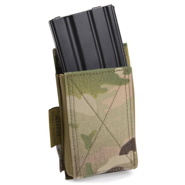 WARRIOR ASSAULT SYSTEMS社のプレキャリやベストのMOLLEシステムに装着し、AKやM4マガジン(STANAG、P-MAG)に対応するシングルエラスティックマガジンポーチです。マガジンへの素早いアクセスを維持しつつ、ポーチのロープロファイル化を目的として設計されています。