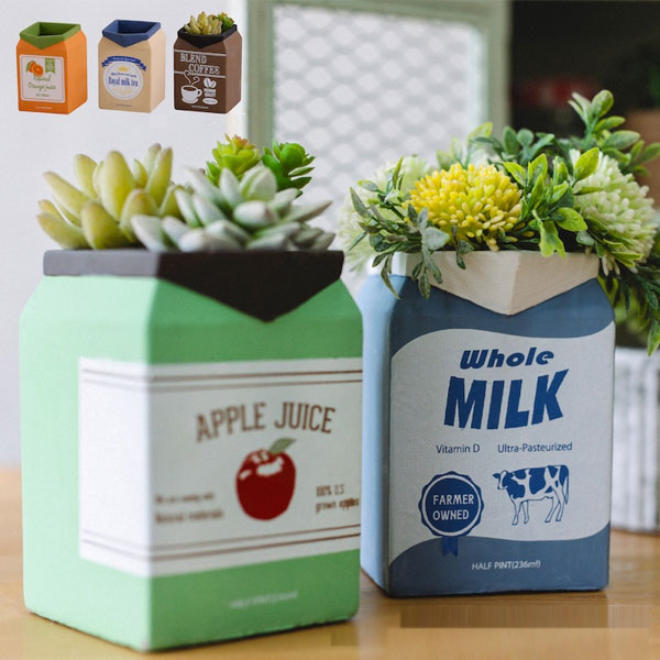 紙パックの飲み物をイメージした、レトロちっくでユニークなフラワーポット♪