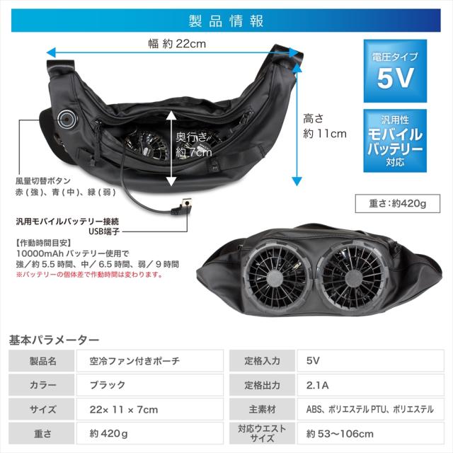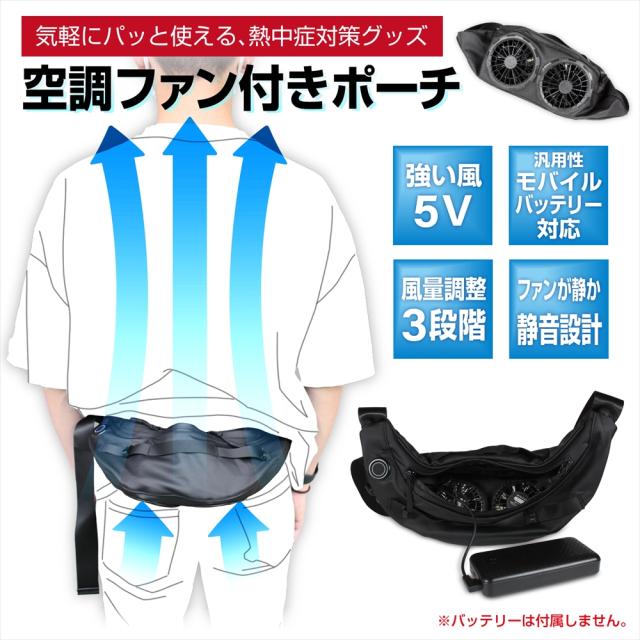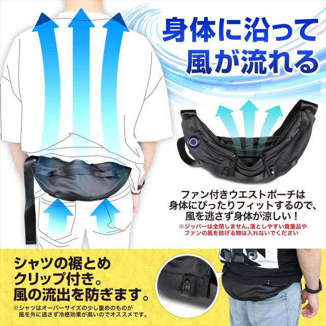 ウエストポーチ ファン 扇風機 5V ファン付きポーチ 腰掛けファン ウエストバッグ型 USB 電源 風量3段階 ウエストポーチファン COOL ウエストバッグ 暑さ対策 アウトドア ファン 扇風機 熱中症対策 クール 男女兼用 暑さ対策グッズ 【宅配便送料無料】