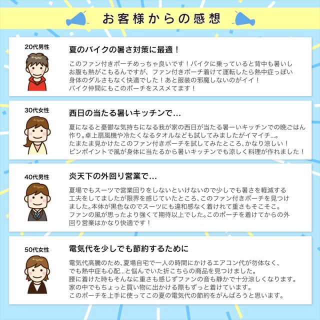 ポーチのファンが外気を取り込み、服の中に風を送ります。