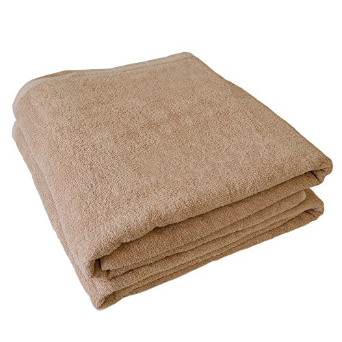 2.ライトブラウン 【とっても大きい業務用のタオル】200cm*100cmのとっても大きいバスタオルです。探してもあまり店頭では見かけない、大人の男性もすっぽり包まれる特殊なサイズです。業務用ですのでフチの縫製にも耐久性がございます。エステサロン・理容室・整骨院・健康ランド・介護用など、幅広く多くの店舗様でご利用いただいております。