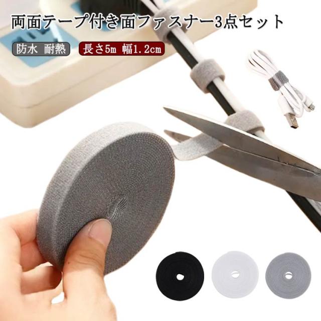 面ファスナー 縫製用 業務用 強力 両面テープ 貼付テープ 粘着 オス 長さ5m 幅1.2cm 3点セット メス フック ループ 縫い付け用 マジックテープ 手芸 生地 裁縫 耐久性 抜群 防水 耐熱 防じん テープ コスプレ 補修 修繕 白 黒 ホワイト ブラック グレー 網戸 ズレ防止