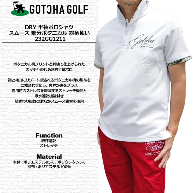 ガッチャゴルフ メンズ 吸汗速乾 半袖 ポロシャツ 232GG1211 スムース素材 ボタニカル柄 GOTCHA GOLF【メール便発送】【新品】SAAR ゴルフウェア トップス