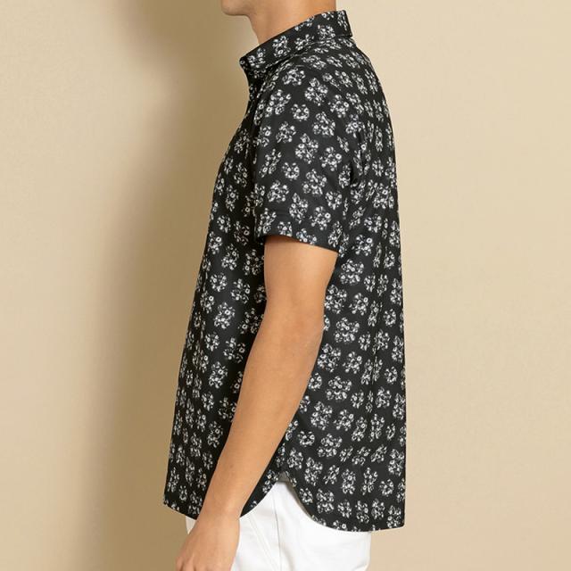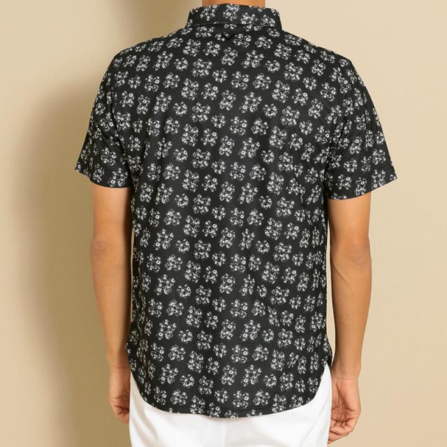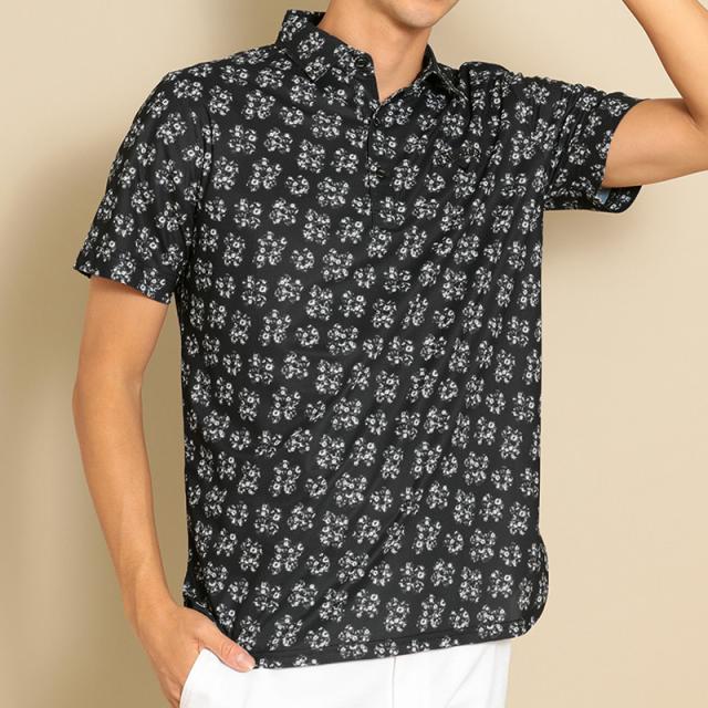 オリジナルの花柄がプリントされた半袖ポロシャツ。