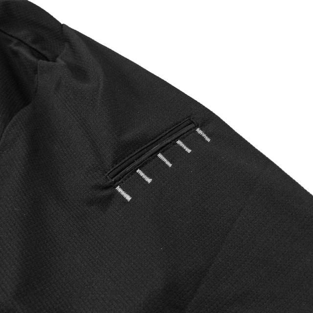 袖の切替、弧を描く袖付けによってゴルフの運動をサポート。