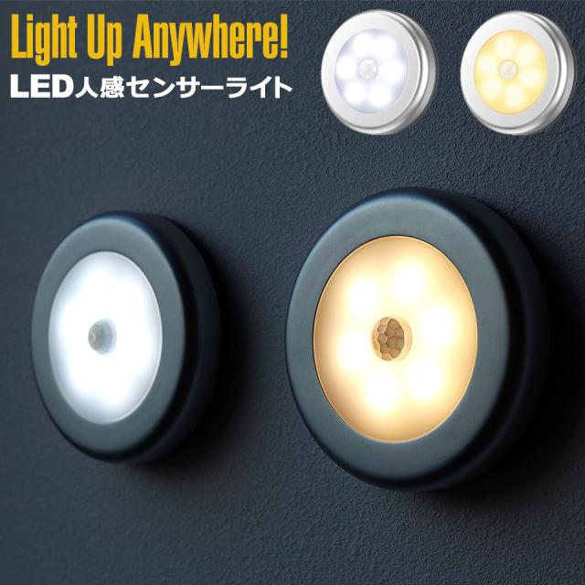【メール便送料無料】 人感センサーライト 室内 ナイトライト フットライト LED 照明 ライト マグネット 人感センサー 屋内 電球色 昼白色 丸型 小型 フットライト 足元灯 足元ライト 乾電池式 両面テープ 階段 玄関 廊下 クローゼット キッチン 台所 人感センサー ライト y4