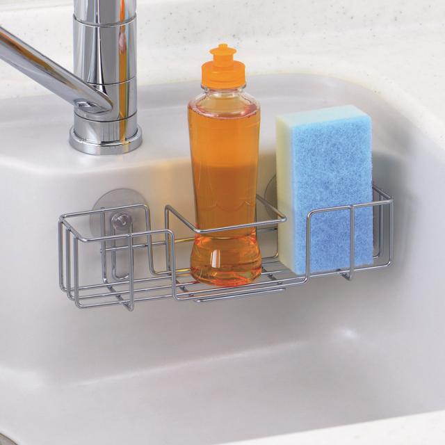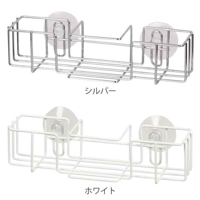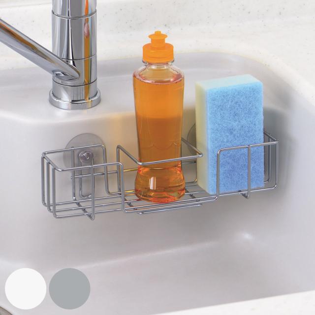 スポンジラック シンプルストレージ スリムポケット ( 防サビ加工 吸盤 スポンジホルダー スポンジ置き スポンジ収納 スポンジ入れ スポンジ 入れ 置き 仕切り付き 洗剤立て 洗剤置き たわし入れ たわし置き 吸盤式 )