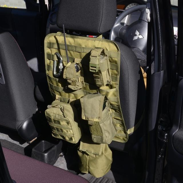 MOLLEシステムに対応した便利な車載用シートバックカバー