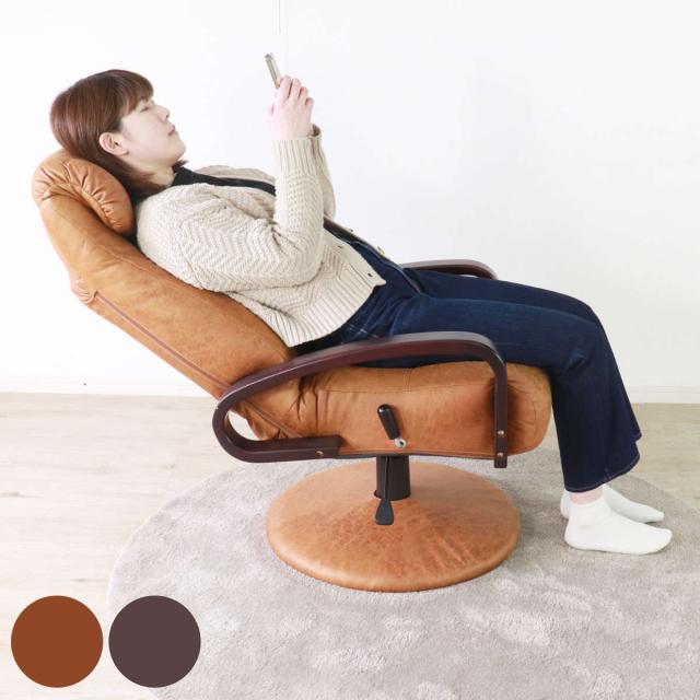 高座椅子 高齢者 回転 リクライニング ヘッドレスト 肘掛 座面高45〜52cm ( 1人掛け ソファ リクライニングチェア 椅子 介護 いす デスク チェア レザー調 ハイバック へたりにくい ポケットコイル ヴィンテージ調 おしゃれ )