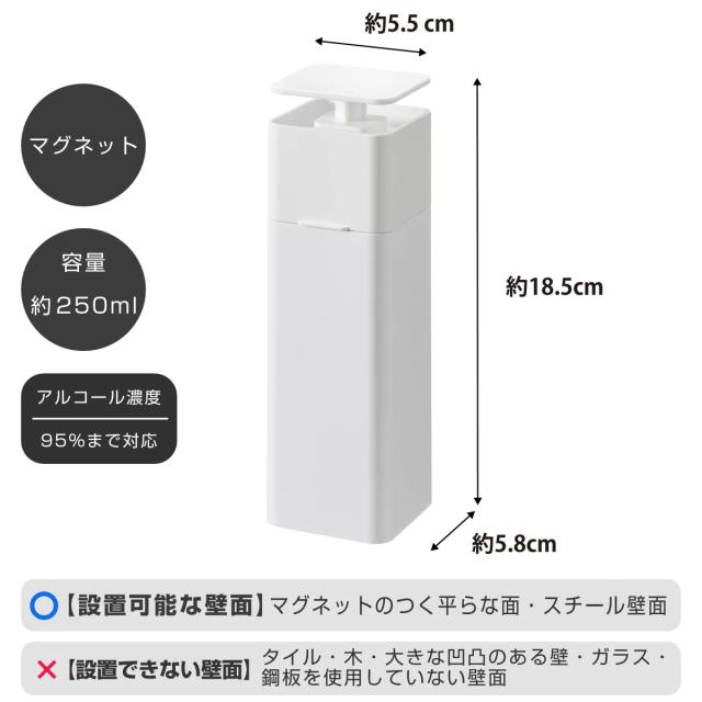 | 備考 | アルコール濃度:95%まで対応 取り付け可能な壁面:マグネットがつく平らな面・スチール壁面 |
