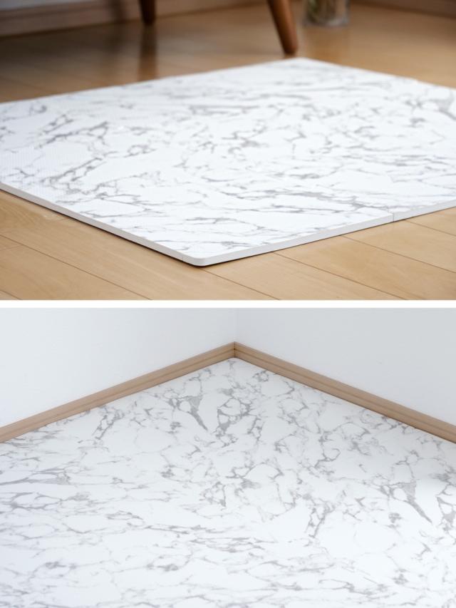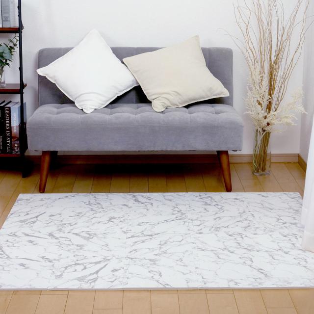 フチ付きでラグのように使える大理石柄ジョイントマット