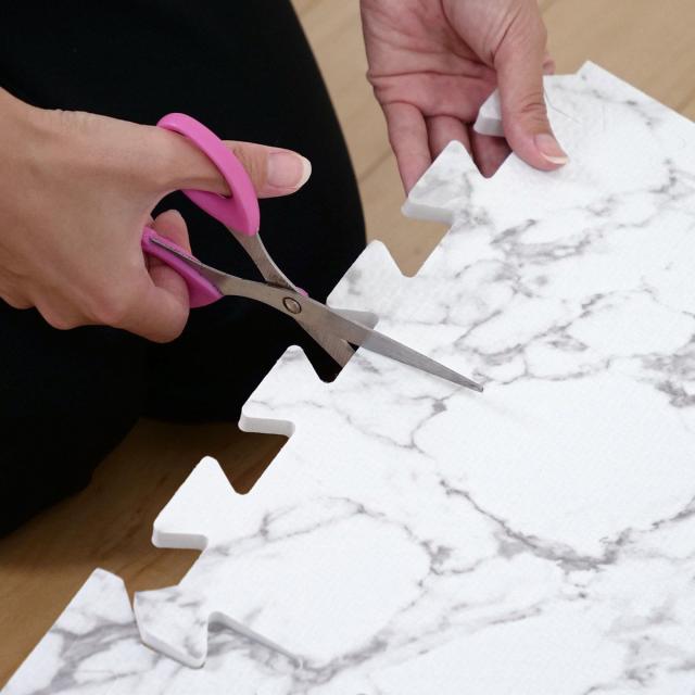 ハサミやカッターでカット出来るので、お好みの形に合わせてアレンジも自由自在です。柄がランダムでジョイント部のつなぎ目が目立ちにくいので、カットをしてもお部屋に馴染みます。