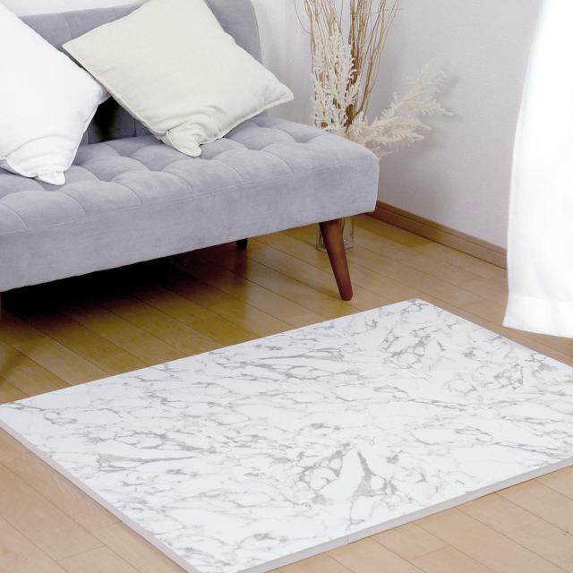 フチ付きでラグのように使える大理石柄ジョイントマット