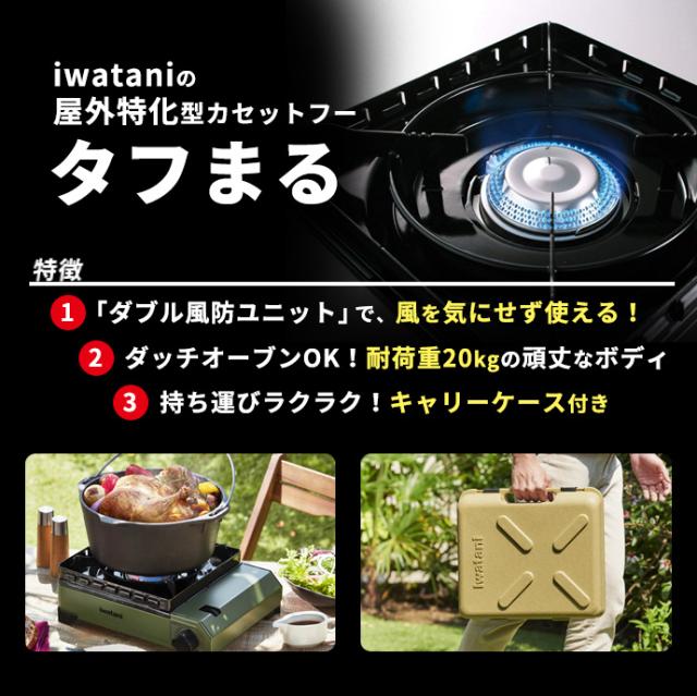 イワタニ カセットフー タフまる+プレート3種セット(おまけつき) ブラック / オリーブ | カセットコンロ プレート付き iwatani 風防付き アウトドア キャンプ 丈夫 卓上 防災 焼肉 たこ焼き 網焼き プレートセット